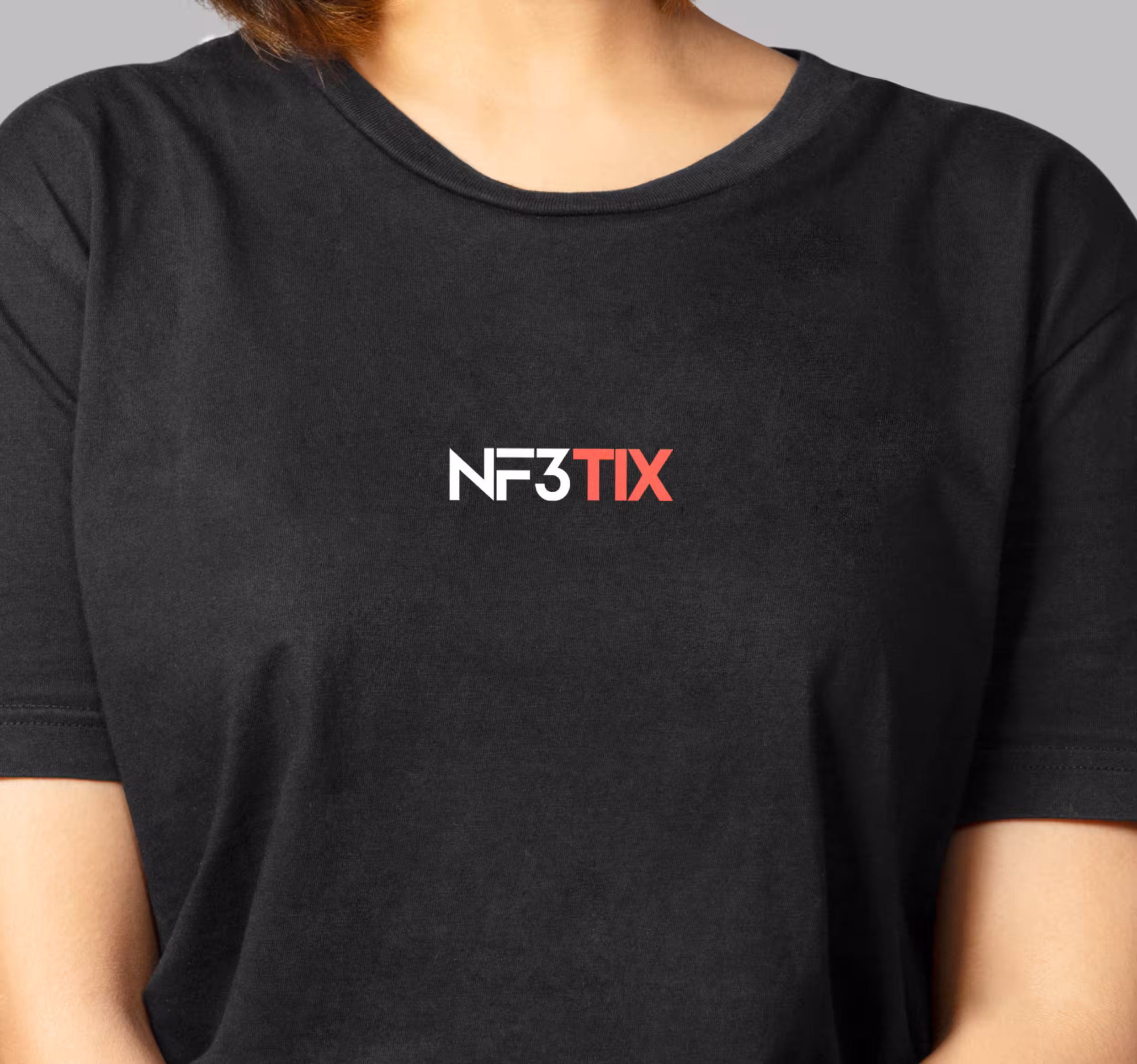 NF3TIX was designed to live beyond the screen. Merchandise, event graphics, and physical brand applications extend the identity into real world environments where events happen.